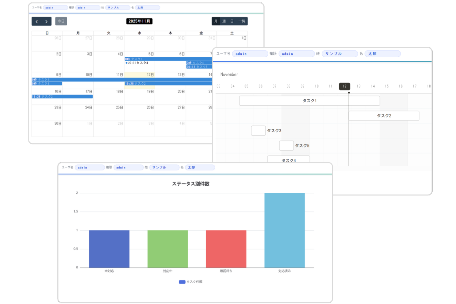 進捗や成果をグラフで可視化し、状況を直感的に把握できます。 データに基づいた判断を行いやすくなり、意思決定をより迅速かつ的確に進められます。